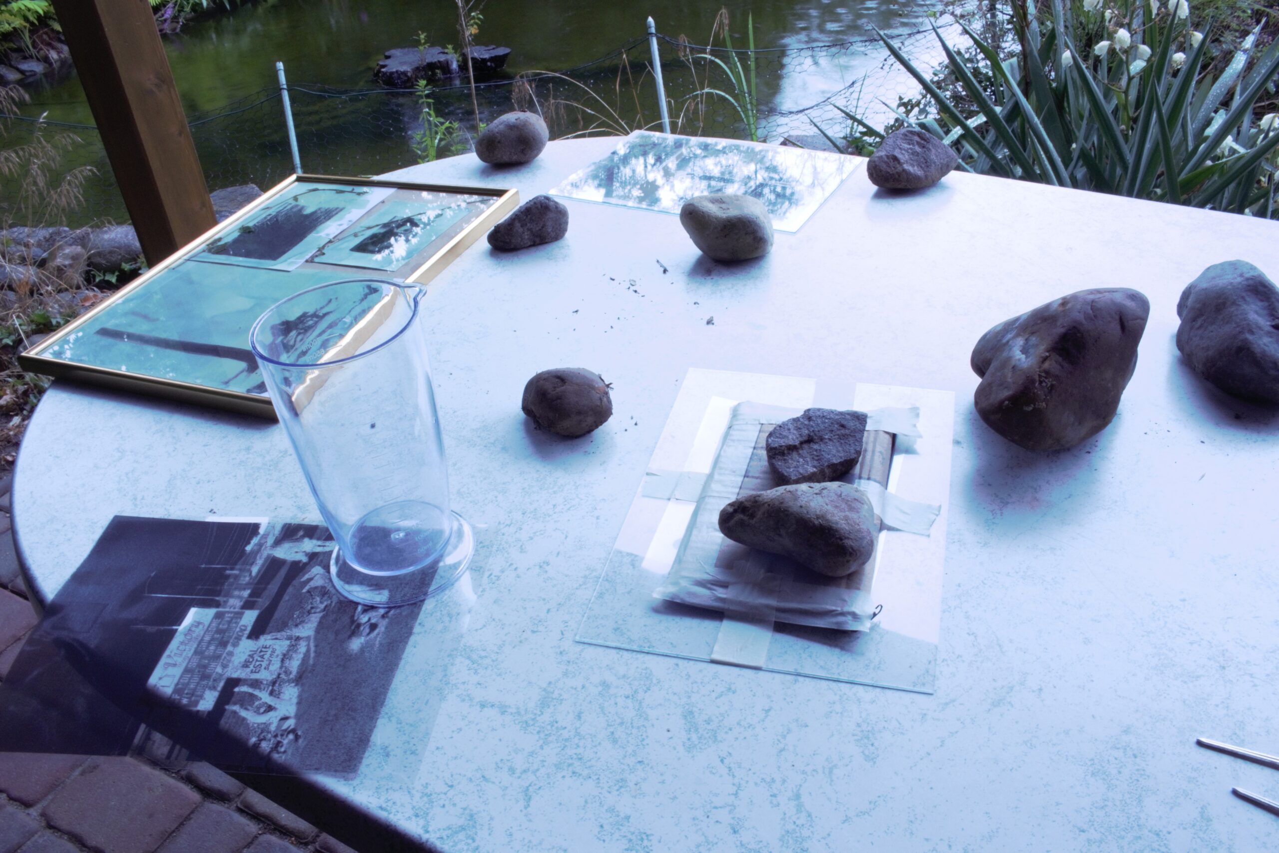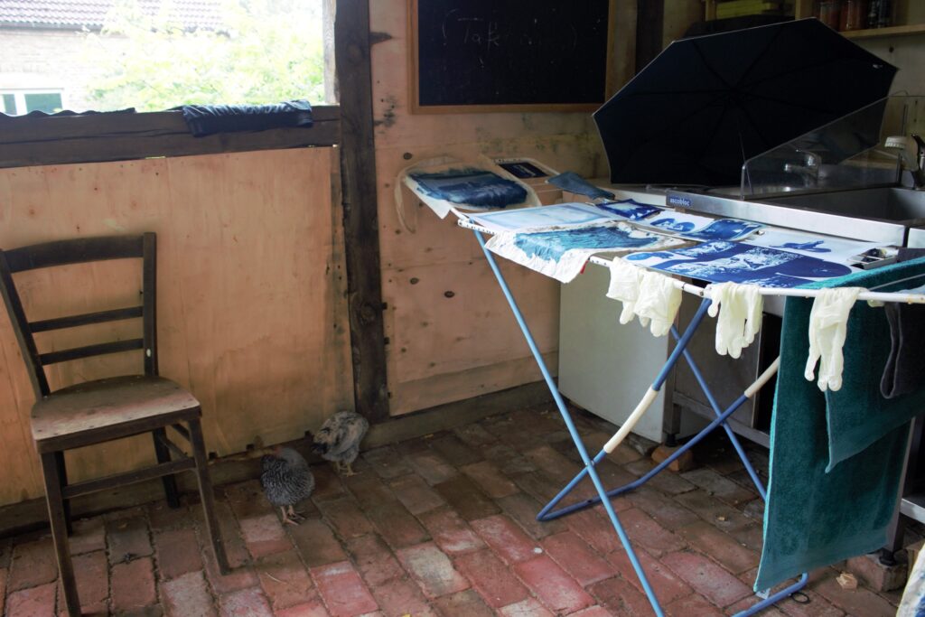 In einem 3-Tägigen Workshop lernten insgesamt 7 Teilnehmer*innen die Cyanotypie kennen. Hierbei handelt es sich um das älteste Photodruck-Verfahren, das mit Sonnenlicht funktioniert. Es wurde mit Schatten experimentiert und herumprobiert was das Zeug hielt – ganz im Sinne des „Old Shadows“. Entstanden sind kleine und große Kunstwerke, von der Postkarte bis zum Jutebeutel. Die anschließend draußen geplante Ausstellung inklusive eines Konzertes fiel jedoch leider ins Wasser, da es das gesamte Wochenende geregnet hatte. Einer Wiederholung im nächsten Jahr steht jedoch nichts im Wege.